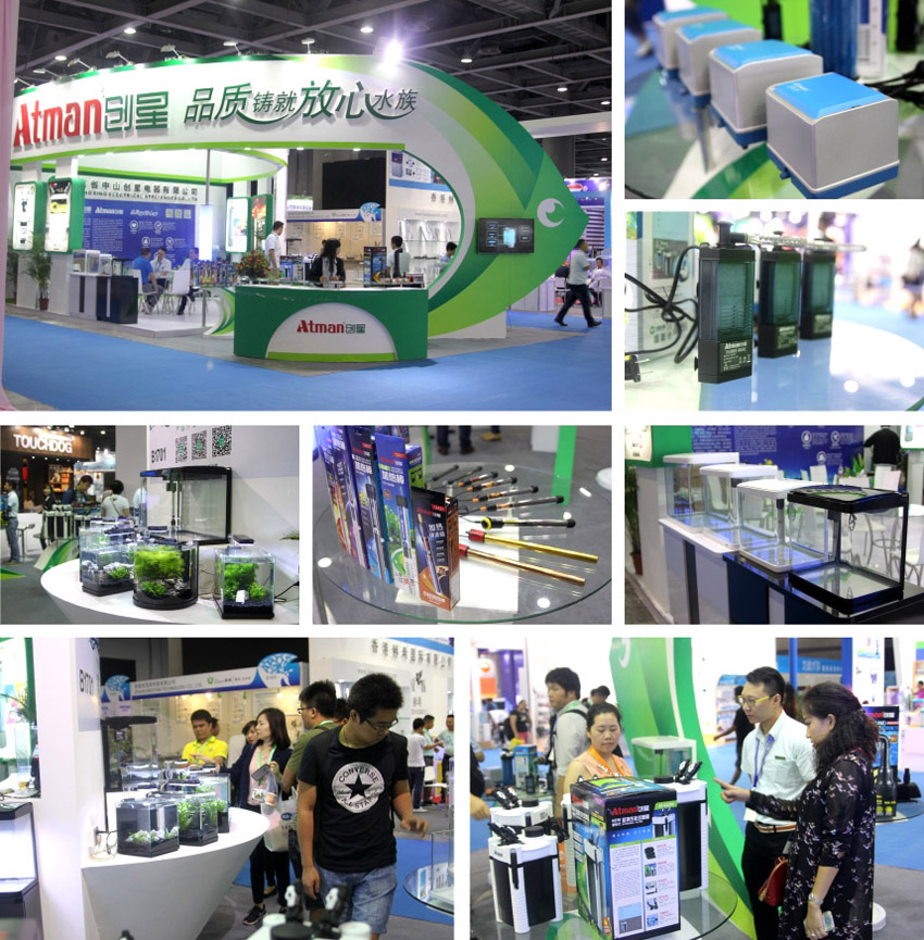 我们把本次参展看作是2015年江南最新官方研发的阅兵场,展会上秀出了以“微水族”为概念的新一代配套式鱼缸,新研发的节能水泵,气泵(气立方),新型加热棒(猛将,金刚),新升级的AT缸外生化过滤桶系列等等。